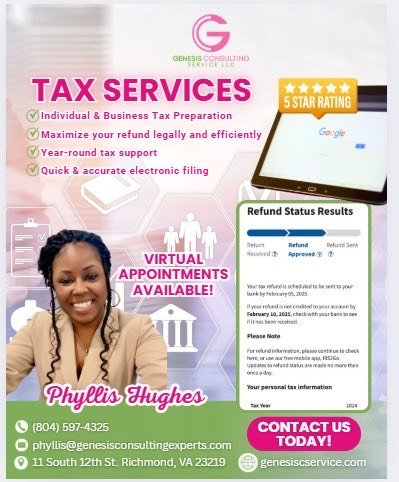 Tax season shouldn’t bring stress. Genesis Consulting Service delivers accurate, secure, and convenient tax preparation for individuals and business owners — helping you keep more of what you’ve earned while remaining fully compliant with IRS standards. We handle the details. You enjoy peace of mind.